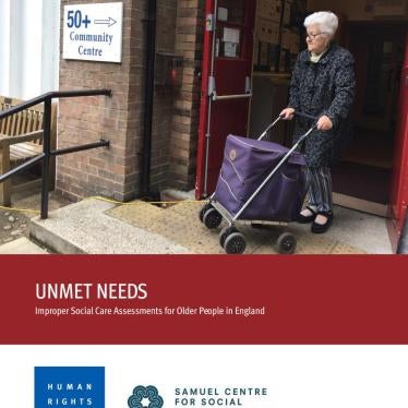 For this report, Human Rights Watch spoke with older people and their relatives in 12 cities and towns across England. Some said that assessors appeared not to understand their disabilities and support needs. In other cases, before beginning an assessment, assessors announced that services would be cut regardless of an individual’s actual need. In some cases, services were denied or cut significantly, affecting older people’s health and wellbeing. More >
