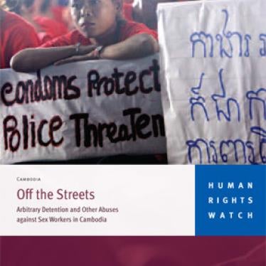 تقرير هيومن رايتس ووتش "بعيداً عن الشوارع: الاحتجاز التعسفي والانتهاكات الأخرى بحق العاملات بالمجال الجنسي في كمبوديا" الذي جاء في 76 صفحة، يستند إلى أكثر من 90 مقابلة ومناقشة جماعية مع عاملات بالجنس من النساء ومن المتحولين جنسياً في فنوم بنه، وفي باتامبانغ، وبانتاي مينشي وسيم ريب. ويصف التقرير كيفية تعرض العاملات بالمجال الجنسي لجملة من الانتهاكات، منها الضرب والابتزاز والاغتصاب على أيدي السلطات، لا سيما في فنوم بنه.