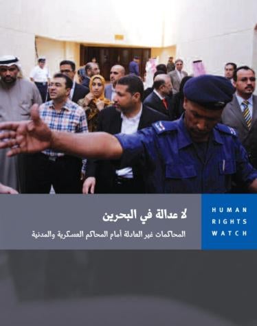 يوثق التقرير الانتهاكات الجسيمة لحقوق إجراءات التقاضي السليمة في محاكمات شهيرة في محاكم عسكرية خاصة في البحرين في عام 2011، ومنها محاكمة 21 ناشطاً سياسياً بارزاً ومحاكمة 20 شخصاً بين طبيب ومشتغل بالمجال الصحي، ومحاكمات سياسية الدوافع في محاكم جنائية طبيعية منذ عام 2010.