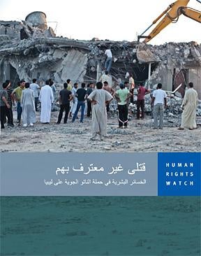 تقرير "قتلى غير معترف بهم: الخسائر البشرية في حملة الناتو الجوية على ليبيا" الذي جاء في 76 صفحة يفحص تفصيلاً ثماني غارات جوية للناتو في ليبيا أسفرت عن مقتل 72 مدنياً، بينهم 20 سيدة و24 طفلاً. التقرير يستند إلى تحقيق ميداني واحد أو أكثر لكل من مواقع الهجمات أثناء وبعد النزاع، بما في ذلك مقابلات مع الشهود وسكان المناطق المتأثرة بالهجمات.