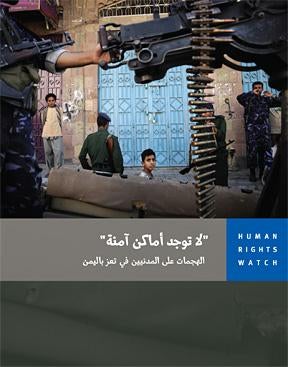 تقرير "لا توجد أماكن آمنة: الهجمات على المدنيين في تعز" الذي جاء في 75 صفحة، دعت فيه هيومن رايتس ووتش الولايات المتحدة والاتحاد الأوروبي ودول الخليج إلى الإقرار علناً بأن الحصانة الممنوحة داخل اليمن لصالح ومساعديه الشهر الماضي، لا أثر قانوني لها خارج اليمن.