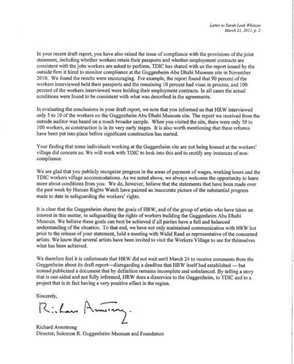 [66] بيان غوغنهايم، على: http://www.guggenheim.org/abu-dhabi/about/joint-statement-on-workers-rights (تمت الزيارة في 12 يناير/كانون الثاني 2011).