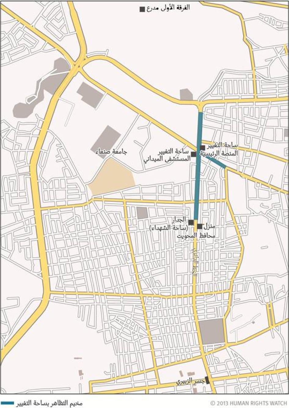 يستند هذا التقرير إلى بحوث ميدانية أجرتها هيومن رايتس ووتش في اليمن بين فبراير/شباط 2011 ونوفمبر/تشرين الثاني 2012. يفحص التقرير انتهاكات حقوق الإنسان أثناء ما عُرف بهجوم جمعة الكرامة الذي أدى إلى مقتل 45 متظاهراً وإصابة نحو مائتين آخرين في 18 مارس/آذار 2011 في صنعاء.