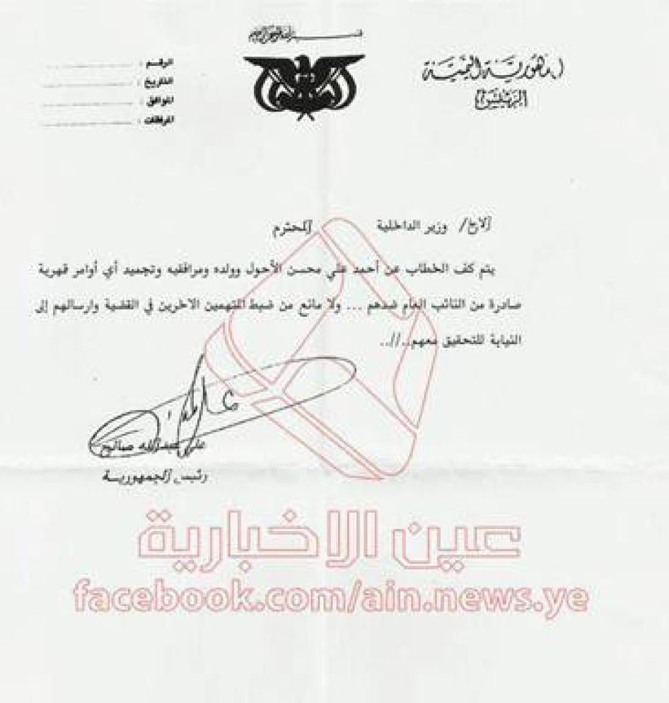 [163]  طلب تصدي المحكمة بتحريك الدعوى الجزائية ضد من لم يشملهم قرار الاتهام إعمالاً لنص المادة (32) أ.ج. ("طلب تحريك الدعوى الجزائية")، مقدم بتاريخ 13 أكتوبر/تشرين الأول 2012 لتحريك اتهامات إضافية، ص 27. نشرت صحيفة المعارضة "مآرب برس" المذكرة في أبريل/نيسان 2011 ثم أصدرت اعتذاراً الشهر التالي قائلة إن وزارة الداخلية وفرت للصحيفة وثيقة رسمية تحمل نفس رقم التعريف الخاص بمذكرة المصري المزعومة، لكن بتاريخ 11 مارس/آذار 2011. انظر: "الداخلية تنفي صحة المذكرة التي تحدثت عن توزيع أسلحة.. وتؤكد أنها وثيقة مزورة"، مأرب برس.نت، 5 مايو/أيار 2011: http://marebpress.net/news_details.php?sid=33640&lng=arabic (تمت الزيارة في 24 نوفمبر/تشرين الثاني 2012).