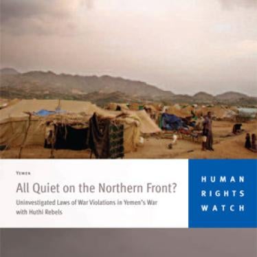 Der 54-seitige Bericht „All Quiet on the Northern Front?: Uninvestigated Laws of War Violations in Yemen’s War with Huthi Rebels“ dokumentiert, dass Regierungstruppen für willkürlich Bomben- und Artillerieangriffe auf bewohnte Gebiete verantwortlich gewesen sein sollen, bei denen zivile Opfer zu beklagen waren. Darüberhinaus sollen Huthi-Rebellen standrechtliche Hinrichtungen durchgeführt haben und völkerrechtswidrig in Wohngebieten stationiert gewesen sein. Auch sollen Angehörige der Huthi-Miliz für Plünderungen und Brandschatzungen verantwortlich gewesen sein, „menschliche Schutzschilde“ eingesetzt haben und Zivilisten an der Flucht aus der Gefechtszone gehindert haben, selbst wenn diese medizinische Versorgung benötigten. Beide Konfliktparteien haben im Verstoß gegen das humanitäre Völkerrecht Kindersoldaten eingesetzt.