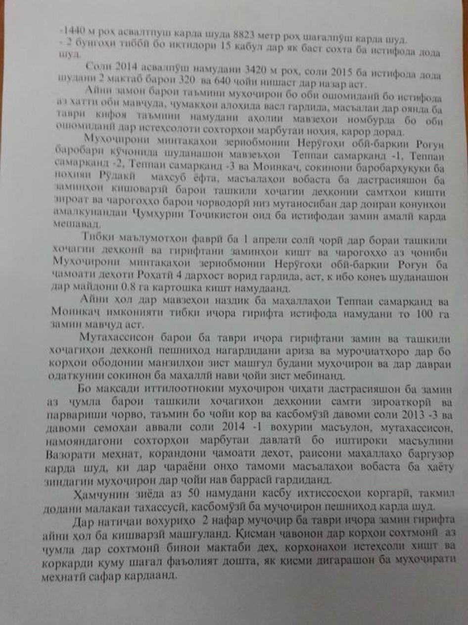[258] Мактуб аз Ф.У. Исматов - муовини раис, ноҳияи Рӯдакӣ ба Созмони Дидбони ҳуқуқи башар, апрели соли 2014.