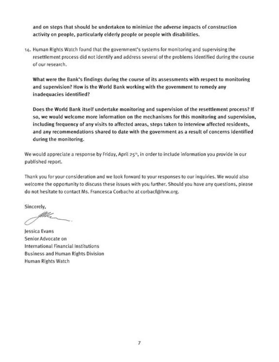 [280] Бонки ҷаҳонӣ, Сиёсати амалиётӣ, 4.12, Кӯчонидани ғайриихтиёрӣ. Сиёсатҳои Бонки ҷаҳонӣ аз чанд нигоҳ аз қонуни байналмилалии ҳуқуқи башар маҳрум аст: Нигаред: Рушди озод аз ҳуқуқвайронкунӣ: Чӣ гуна Бонки ҷаҳонӣ бояд одамонро аз поймошавии ҳуқуқи инсониашон ҳимоят кунад, июли соли 2013, http://www.hrw.org/sites/default/files/reports/worldbank0713_ForUpload.pdf.