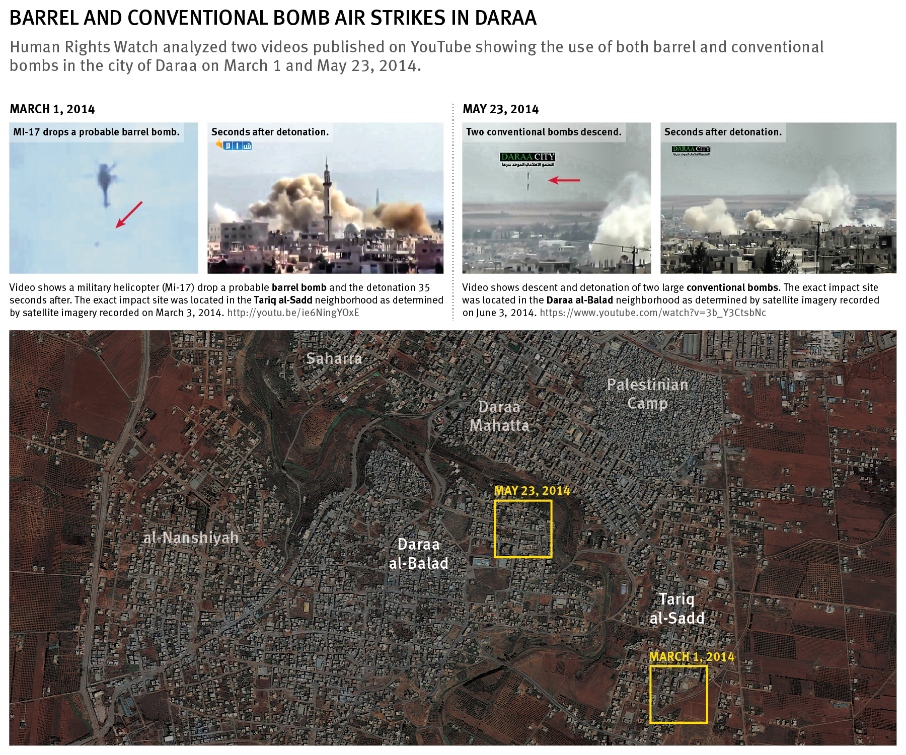 Le Conseil de sécurité se réunira le 26 février pour sa prochaine série de rapports sur la Résolution 2139 du 22 février 2014, qui exigeait que toutes les parties au conflit en Syrie mettent fin à l'usage indiscriminé de barils d’explosifs et d'autres armes contre des zones peuplées. Les groupes armés non étatiques ont également mené des attaques indiscriminées, y compris par le biais de voitures piégées et d’armes explosives dans des zones contrôlees par les forces gouvernementales. Le Conseil de sécurité devrait imposer un embargo sur les armes livrées au gouvernement ainsi qu’aux groupes rebelles impliqués dans des attaques aveugles généralisées ou systématiques, selon Human Rights Watch.