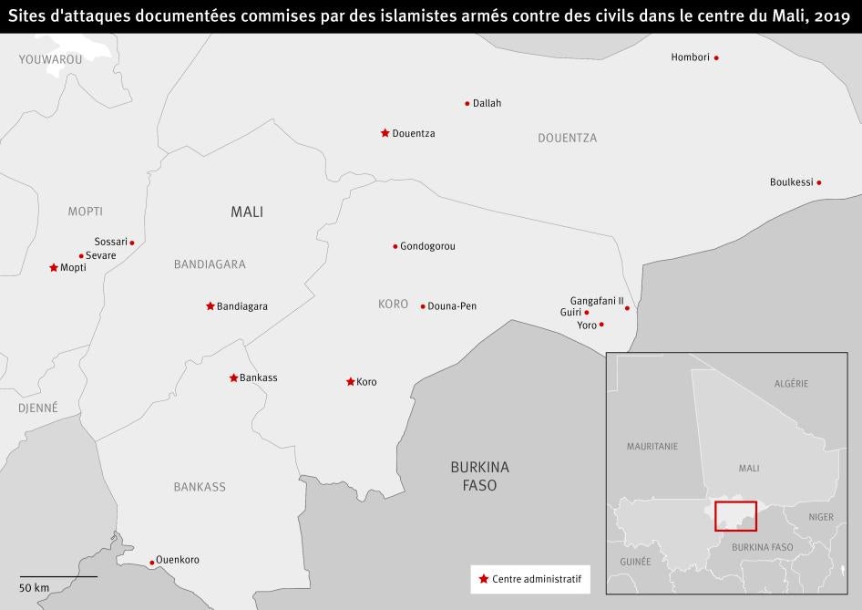 Selon Human Rights Watch, le nombre total de civils tués dans le centre du Mali en 2019 lors d’attaques communautaires et d’attaques d’islamistes armés est bien plus élevé que celui indiqué dans ce rapport, car d’incessantes représailles sont exercées dans des zones souvent isolées. Les victimes de ces attaques, pour lesquelles il n’y avait souvent pas de témoins, ont été tuées par balle ou à coups de couteau alors qu’elles s’occupaient de leur bétail, travaillaient dans leurs champs ou se rendaient au marché pour faire des achats ou vendre leurs produits.