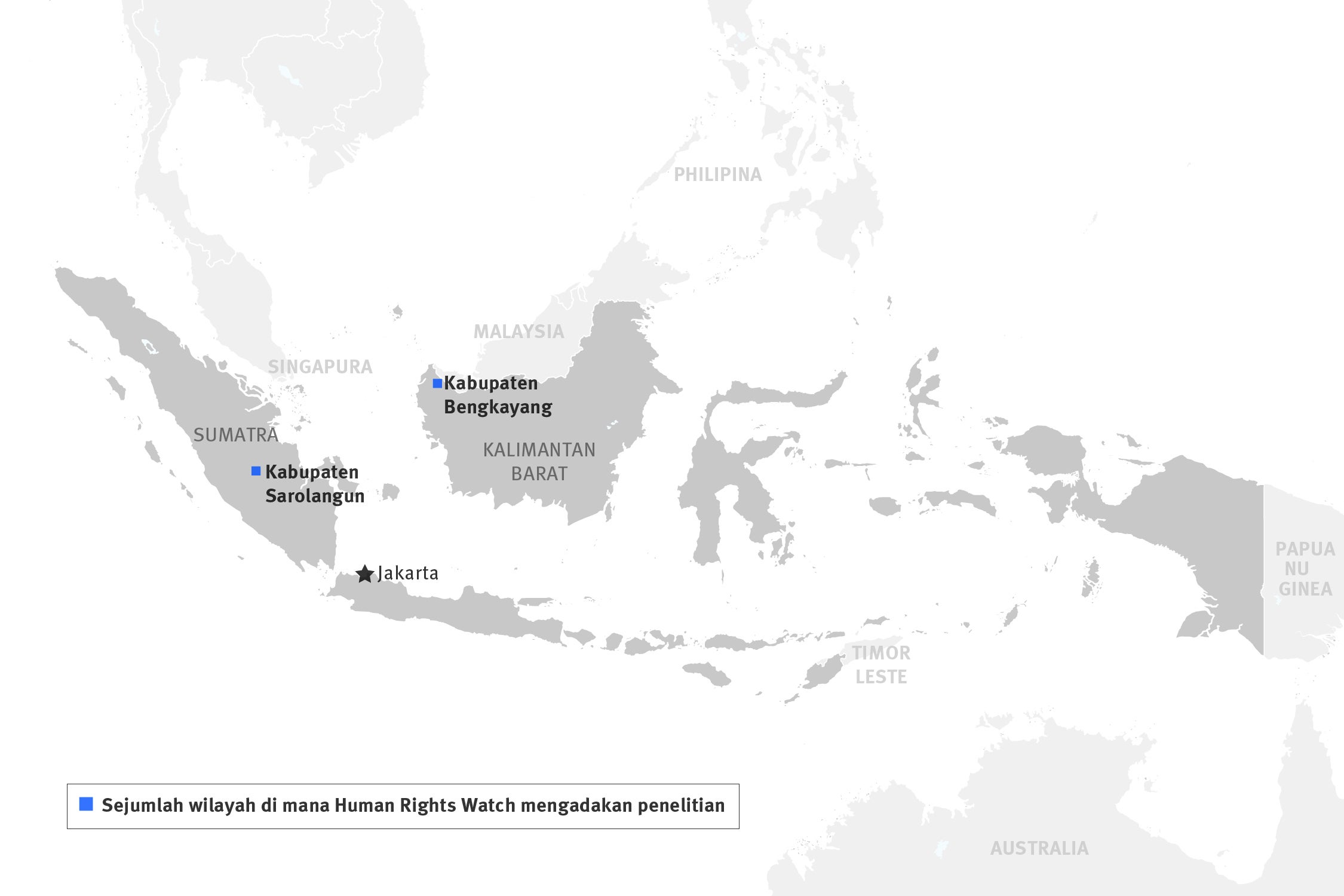 Tambal-sulam hukum dan peraturan yang lemah, diperparah dengan minimnya pengawasan pemerintah dan kegagalan perusahaan-perusahaan perkebunan kelapa sawit dalam memenuhi uji tuntas hak asasi manusia, mengakibatkan pelanggaran hak asasi manusia terhadap masyarakat adat di provinsi Kalimantan Barat dan Jambi, menurut hasil penelitian kami. Temuan-temuan ini konsisten dengan penelitian Human Rights Watch sebelumnya, pada 2003 dan 2009, yang menyoroti dampak buruk dari industri pulp dan kertas di Sumatra, serta korupsi, tak memadainya pengawasan, dan kurangnya akuntabilitas perusahaan di sektor kehutanan Indonesia di Kalimantan Barat terhadap masyarakat adat dan komunitas petani.