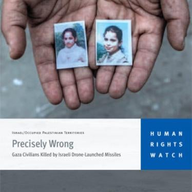39ページの報告書「精密誘導兵器による民間人殺害:イスラエルの無人機ミサイルで殺害されたガザの民間人」は、29人の民間人が死亡(8人の子供を含む)した6件の事件について詳細な調査を行なった報告書。ヒューマン・ライツ・ウォッチは、イスラエル軍が、戦時国際法の定めで義務付けられているすべての実行可能な回避措置(攻撃目標が戦闘員であることを確認する措置)をとらなかったか、あるいは、戦闘員と民間人を区別しなかった、と明らかにした。イスラエルの人権団体とパレスチナの人権団体は、2008年12月から2009年1月まで続いたイスラエル軍によるガザ侵攻で、無人航空機の攻撃42件で民間人が殺害されたことをを明らかにしている。こうした攻撃による犠牲者数は合計87名となる。