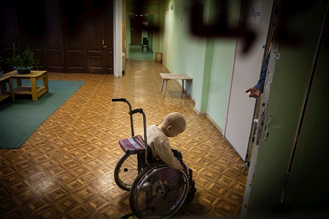 A child in a Russian state orphanage for children with disabilities.