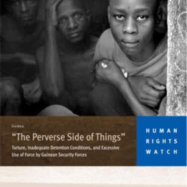 The 30-page report, “The Perverse Side of Things: Torture, Inadequate Detention Conditions and Excessive Use of Force by Guinean Security Forces,” documents how police brutally torture men and boys held in police custody. The victims are individuals suspected of common crimes as well as those perceived to be government opponents. Once transferred from police custody to prison, many are left to languish for years awaiting trial in cramped, dimly lit cells where they face hunger, disease and sometimes death.