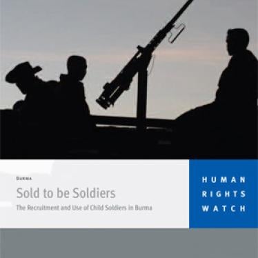 Based on an investigation in Burma, Thailand and China, the 135-page report, “Sold to Be Soldiers: The Recruitment and Use of Child Soldiers in Burma,” found that military recruiters and civilian brokers receive cash payments and other incentives for each new recruit, even if the recruit clearly violates minimum age or health standards.