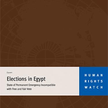 The 24-page report, "Elections in Egypt, State of Permanent Emergency Incompatible with Free and Fair Vote," documents the vague and subjective criteria in Egypt's Political Parties Law that allow the government and ruling party to impede formation of new political parties. Egypt remains under an Emergency Law that since 1981 has given security officials free rein to prohibit or disperse election-related rallies, demonstrations, and public meetings, and to detain people indefinitely without charge.