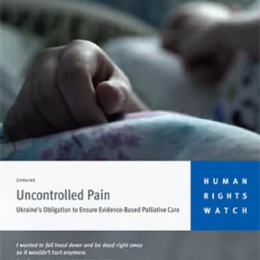 The 93-page report, "Uncontrolled Pain: Ukraine's Obligation to Ensure Evidence-Based Palliative Care," describes Ukrainian government policies that make it impossible for cancer patients living in rural areas to get essential pain medications. While most cancer patients in cities have access to some medications, the treatment they receive is inadequate and provides only limited relief, Human Rights Watch found.