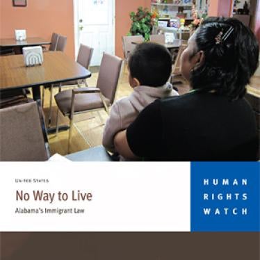 The 52-page report, “No Way to Live: Alabama’s Immigrant Law,” documents the effect of the Beason-Hammon Alabama Taxpayer Citizen and Protection Act, commonly known as HB 56, on unauthorized immigrants and their families, as well as the larger Alabama communities in which they live. It is based in part on first-hand accounts by 57 Alabama residents, including citizens and permanent residents, who reported abuse or discrimination under the law.