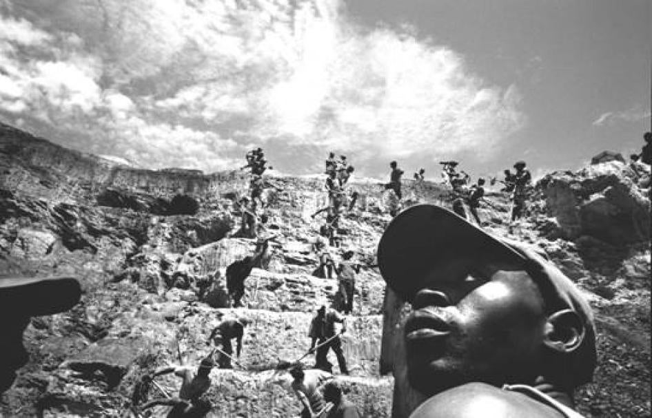 Miners work in the grueling conditions of an open pit gold mine in Watsa, northeastern Congo. © 2004 Marcus Bleasdale / VII