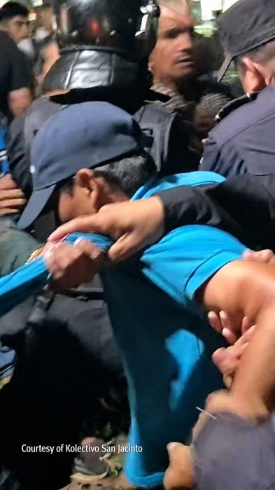 One video shows Pérez and Henríquez calmly speaking with police officers, when one officer grabs Henríquez by his backpack and pulls him away while anti-riot police close in on demonstrators. Police officers then seize Pérez and escort him to a police truck. Despite the footage showing Henríquez, Pérez, and other demonstrators behaving peacefully, prosecutors claimed that Pérez’s arrest was necessary to prevent “inevitable” and “aggressive actions” by demonstrators, court documents say.