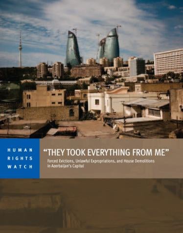This report documents the Azerbaijani authorities’ illegal expropriation of properties and forcible evictions of dozens of families in four Baku neighborhoods, at times without warning or in the middle of the night. The authorities subsequently demolished homes, sometimes with residents’ possessions inside.