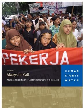 This 74-page report documents how Indonesian children as young as 12 work 14 to 18 hours a day, seven days a week, without a day off. They are also forbidden from leaving their place of employment or contacting their families.