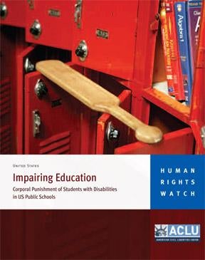 In this 70-page report, the ACLU and Human Rights Watch found that students with disabilities made up 18.8 percent of students who suffered corporal punishment at school during the 2006-2007 school year, although they constituted just 13.7 percent of the total nationwide student population.