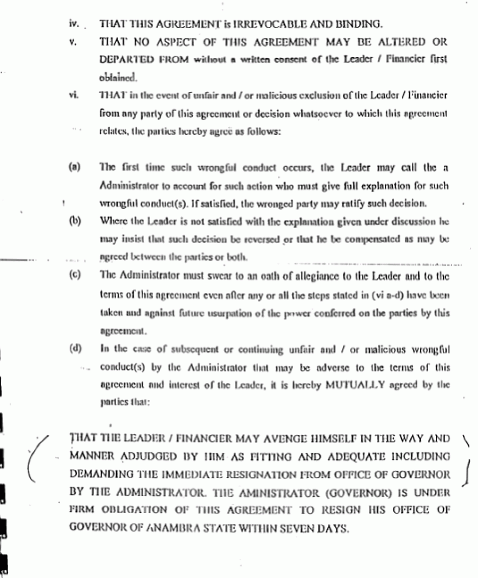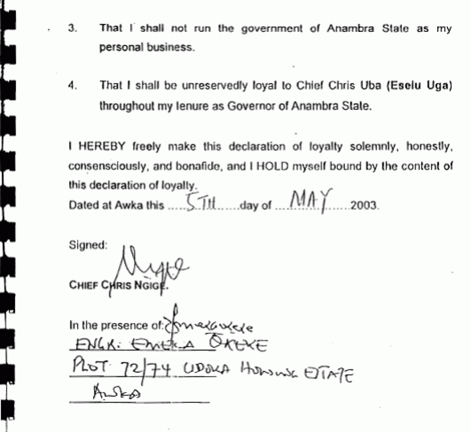 A spokesman for Anambra State Governor Peter Obi told Human Rights Watch, "If you are a member of the PDP and I belong to APGA [the All Progressives Grand Alliance opposition party] we see ourselves more or less like enemies. This is carried too far and results in thuggery, assassination and arson."[30]
