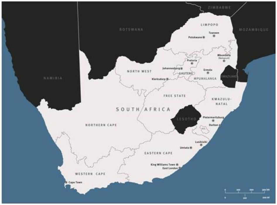 Field research was conducted in townships, small towns, and cities in six of South Africa’s nine provinces: Gauteng, the Western Cape, the Eastern Cape, KwaZulu-Natal, Mpumalanga, and Limpopo. Each of the provinces we visited has at least one group working to provide services to lesbians and transgender men and/or conduct advocacy on behalf of this population. We were unable to visit the North West, Free State, and the Northern Cape provinces due to our lack of contact with lesbians and transgender men in these provinces. We also conducted desk research on violence in South Africa, including gender-based violence.