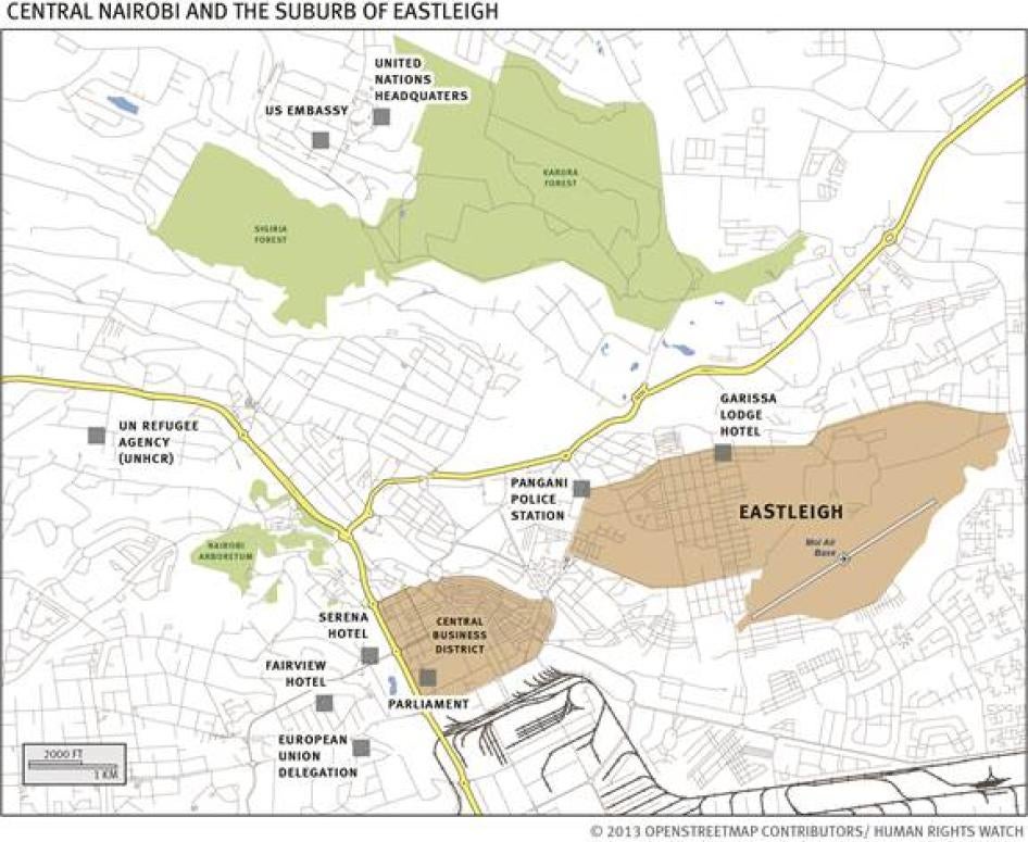 On November 19, 2012, Kenyan police from four different units unleashed a wave of abuses, including torture, against Somali and Ethiopian refugees and asylum seekers and Somali Kenyans in Eastleigh, a predominantly Somali suburb of Nairobi only a few kilometers from the city’s business district, foreign embassies, United Nations headquarters, and tourist hotels.