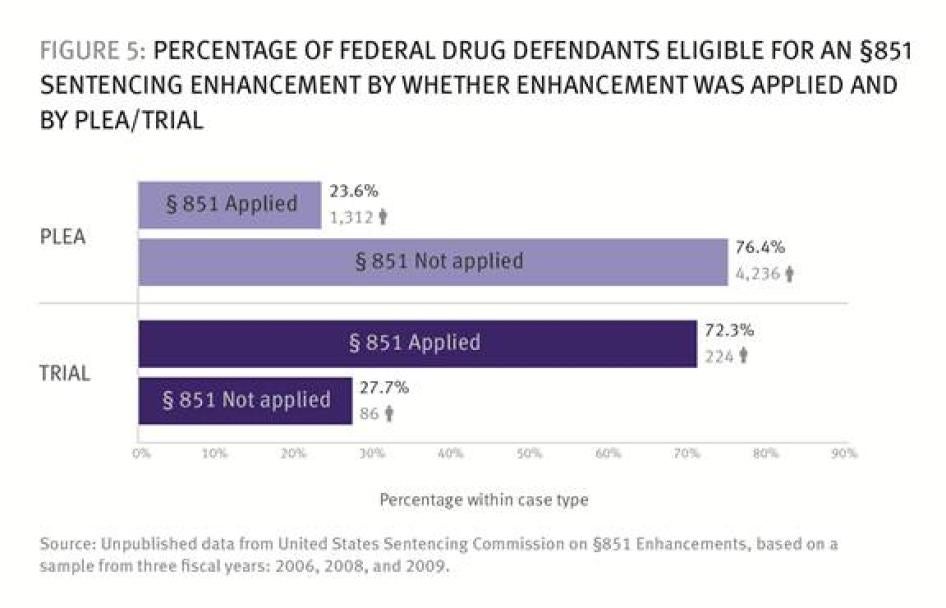 - Among defendants who were eligible for a sentencing enhancement because of prior convictions, those who went to trial were 8.4 times more likely to have the enhancement applied than those who plead guilty.