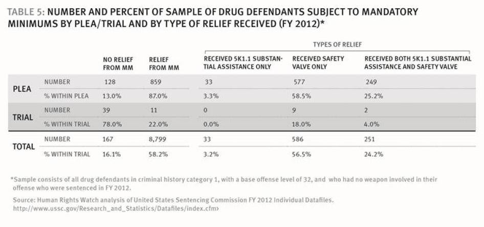 [332] Human Rights Watch analysis of United States Sentencing Commission Fiscal Year 2012 Individual Data Files, http://www.ussc.gov/Research_and_Statistics/Datafiles/index.cfm.