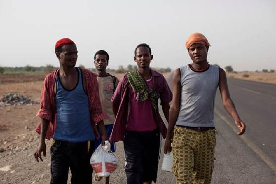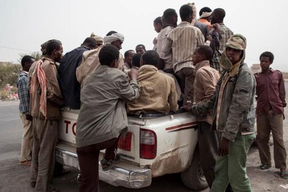 Migrants told Human Rights Watch that armed men greeted them as they waded onto shore from rickety boats on the Yemeni coast. “They kept pointing their guns at us and yelling to get onto the backs of the trucks,” said Ali Kebede, a 21-year-old farmer from Ethiopia who landed on the Yemen coast in August 2013.