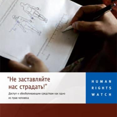(Киев) - В Украине десятки тысяч больных раком на поздних стадиях каждый год без необходимости страдают от острой боли, поскольку не могут получить эффективных, безопасных и недорогих анальгетиков, говорится в публикуемом сегодня докладе Хьюман Райтс Вотч.