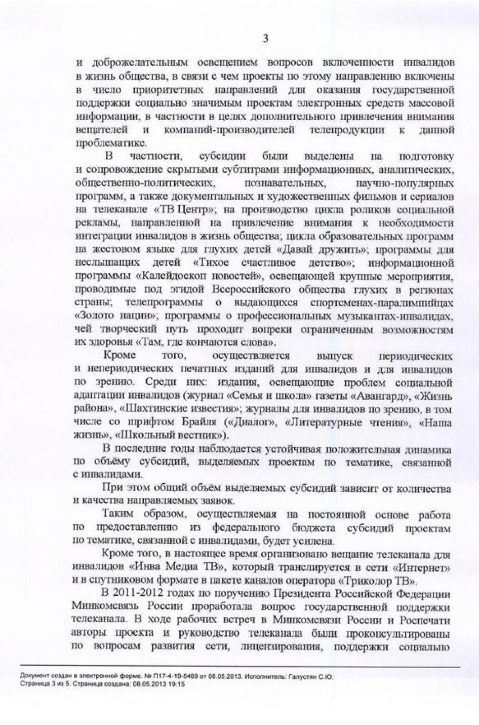 [109]Материалы электронной переписки с активистом за права людей с инвалидностью Анатолием (псевдоним) 23 мая 2013 г. Интервью с активистом за права людей с инвалидностью Светланой. Москва, 17 декабря 2012 г.