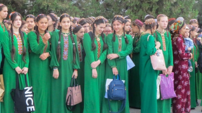 Girls on the first day of school in Ashgabat, Turkmenistan, September 1, 2023.